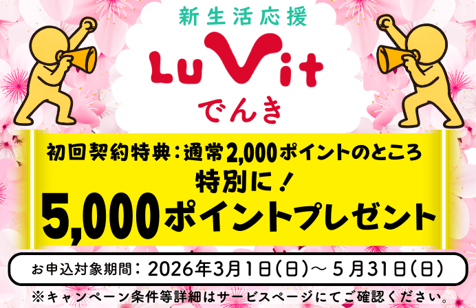 ルビットでんきでは2026年3月1日から5月31日まで切替キャンペーンを実施中ですのでこの機に是非ご利用ください